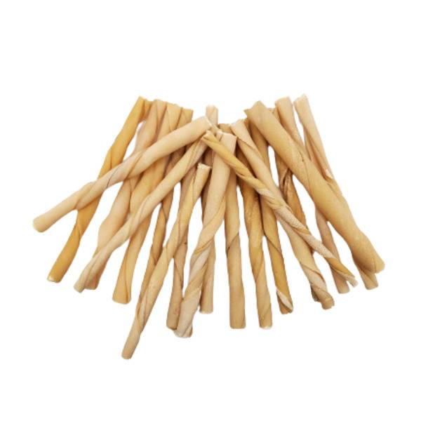 Our 5″ Twisted Beef Collagen sticks on average weigh between 5-6 g each.